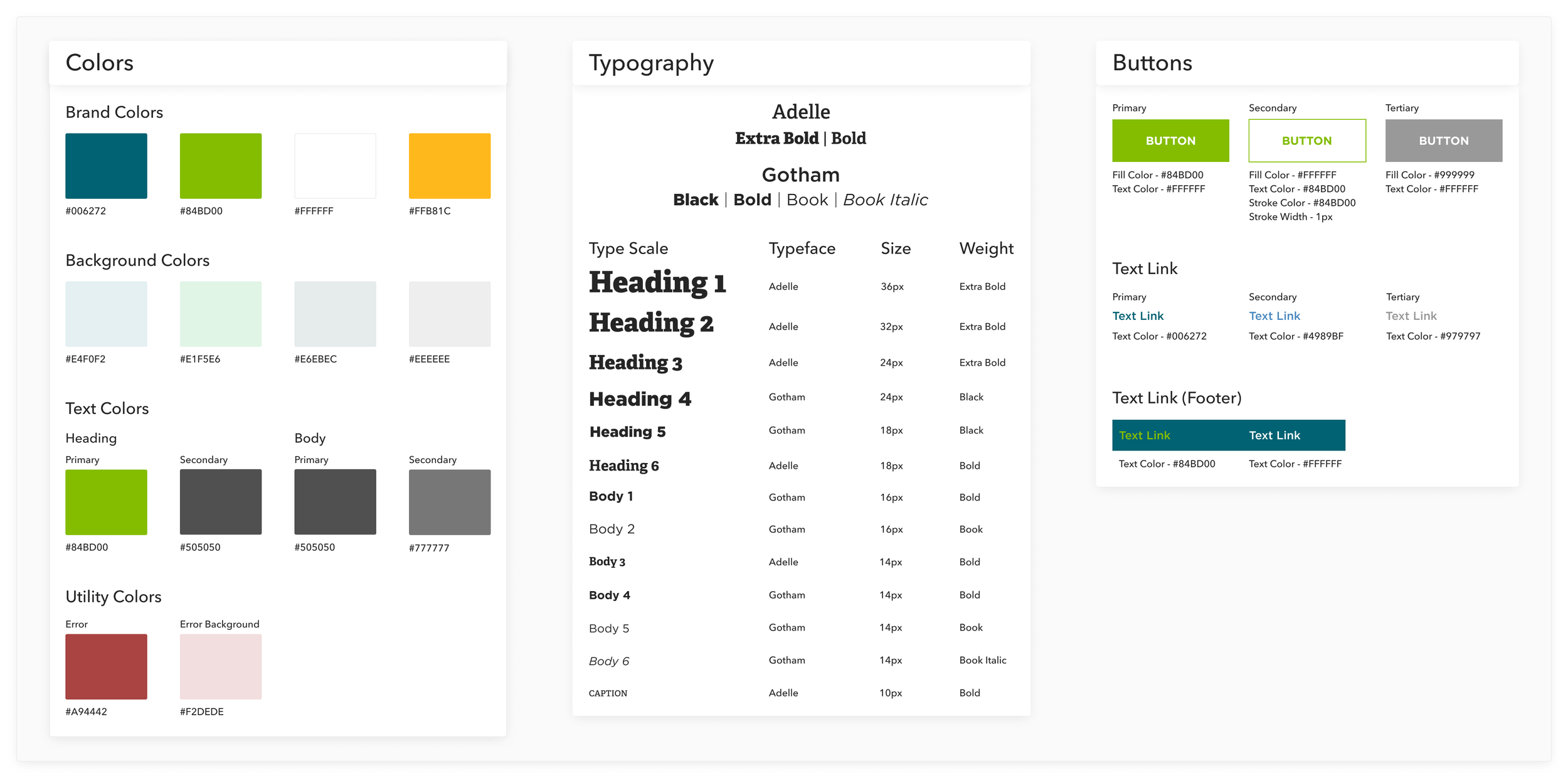 For the ADA Compliant style guide, my goal was to simplify the amount of colors, text styles, and buttons that were on the website while staying true to the brand.